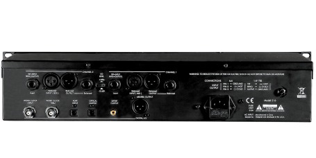 In addition to the analog XLR and 1/4 connections, it features AES/EBU, S/PDIF, and optical outputs. It also features an optical input and word clock input and thru jacks. Sample rate and dither is set by a rotary control on the front panel.