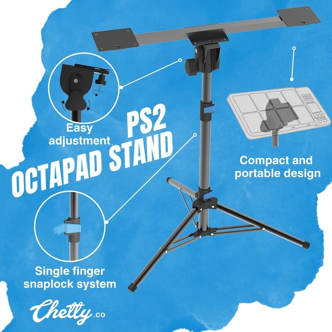 Chetty PS2 Octapad Twin Stand – Heavy Duty with Carry Bag, Adjustable Height & Stable Base, Black, Stand-alone