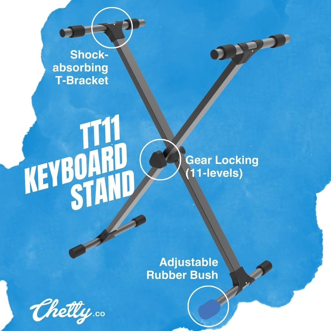 Chetty TT11 Keyboard Stand – X type Sturdy, 11 Positions, Gear Locking, Adjustable Height, Fine Tuning – Matte Black Premium Piano Stand