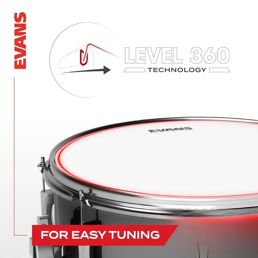● Exclusive Evans Level 360 Technology collar design ensures proper contact between drumhead and drum shell.