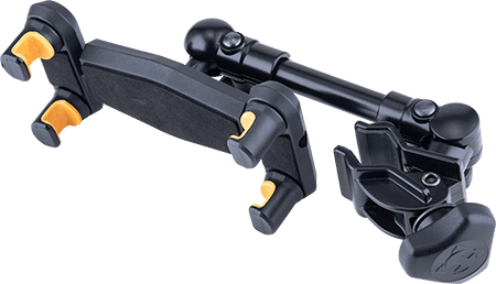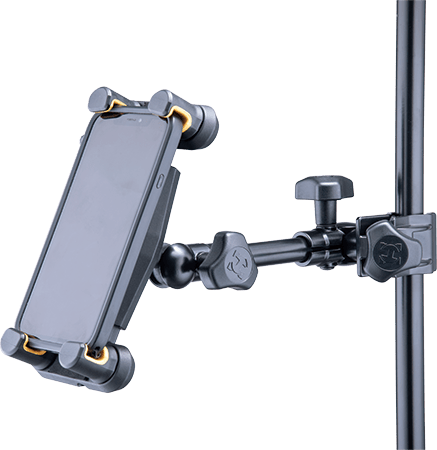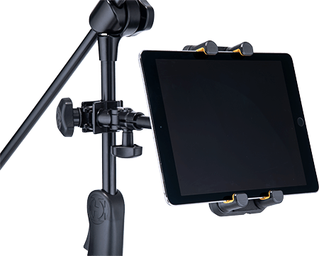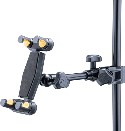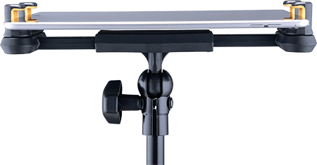 - Attaches to a desk, round and square tubes like keyboard stands, microphone stands or music stands.