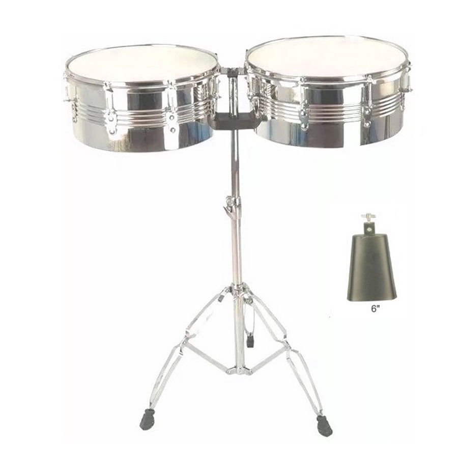 13 inch drum, 14 inch drum, Heavy duty stand, 6 inch Cowbell with mount, Tuning Key